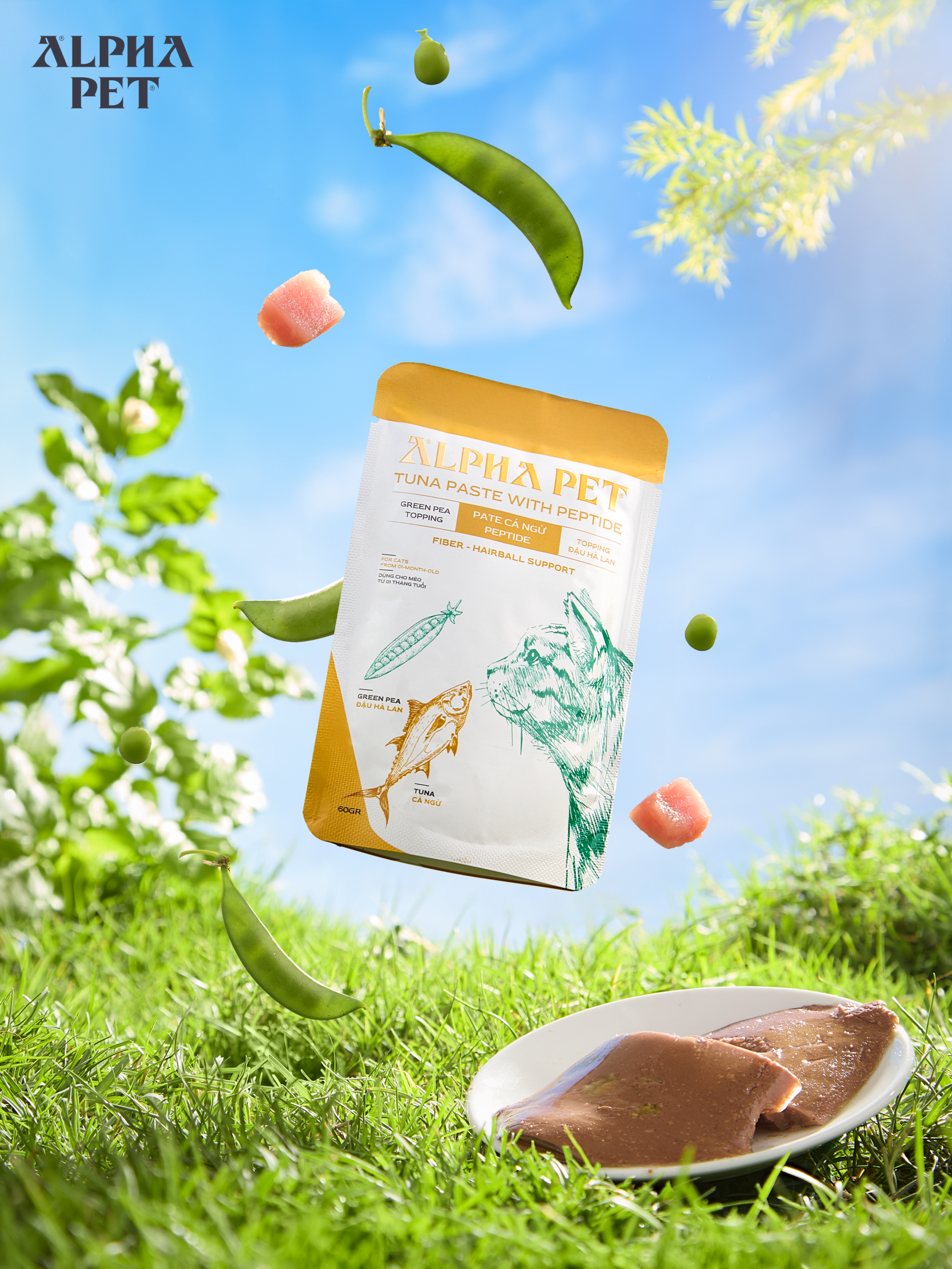 Giải Pháp Dinh Dưỡng: Pate Cá Ngừ Peptide Alpha Pet Topping Đậu Hà Lan