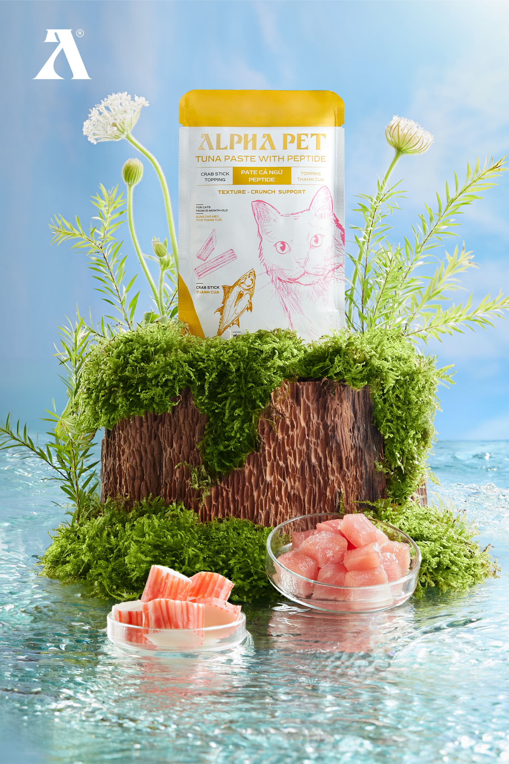 Đổi vị bữa ăn hằng ngày là cách đơn giản nhưng hiệu quả để giúp mèo ăn ngon miệng hơn. Pate cá ngừ Peptide topping thanh cua Alpha Pet mang